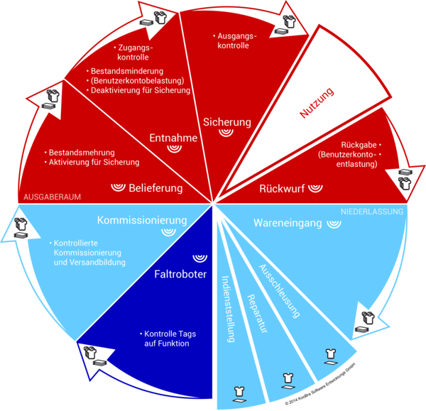 Hellblau: optionale UHF-RFID-gestützte Prozesse